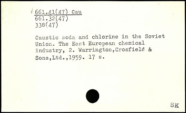 Caustic soda and chlorine in the Soviet Union. The East European chemical industry, 2.