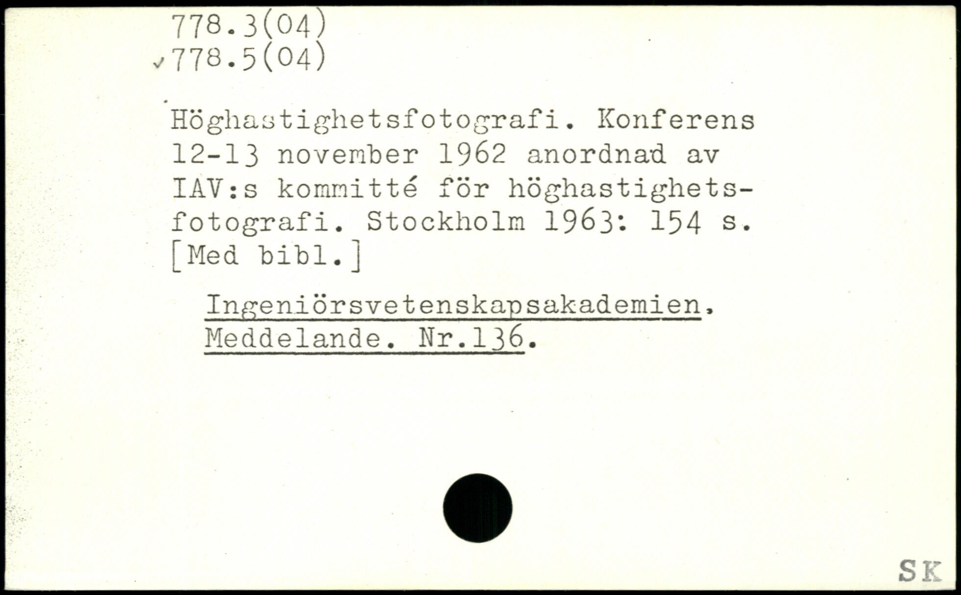 Höghastighetsfotografi. Konferens 12-13 november 1962 anordnad av IAY:s kommitté för höghastighets-fotografi.