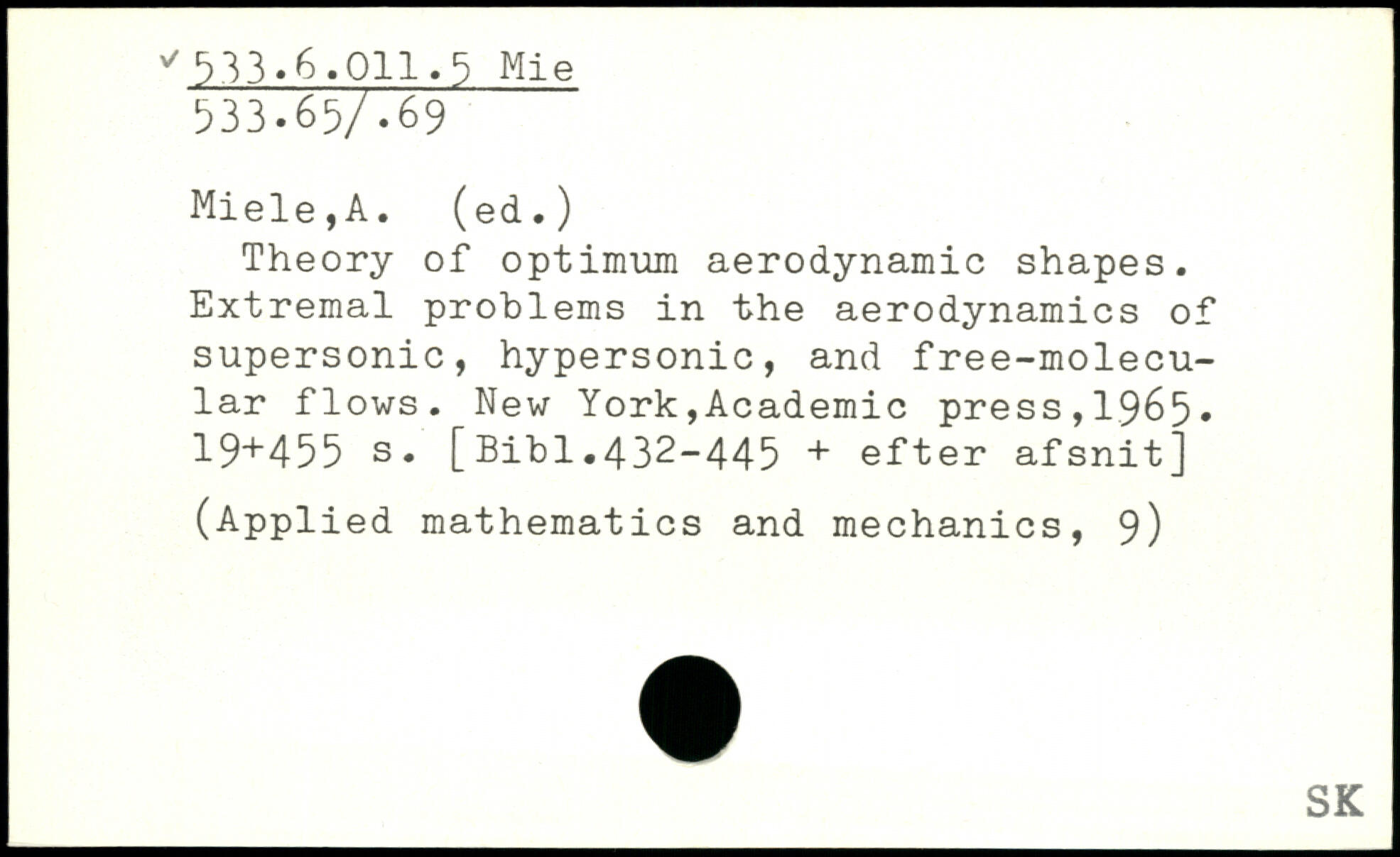 Theory of optimum aerodynamic shapes. Extremal problems in the aerodynamics of supersonic, hypersonic, and free-molecular flows.