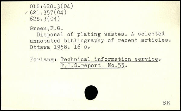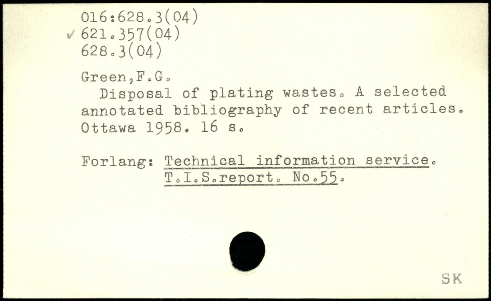 Disposal of plating wastes, A selected annotated bibliography of recent articles.