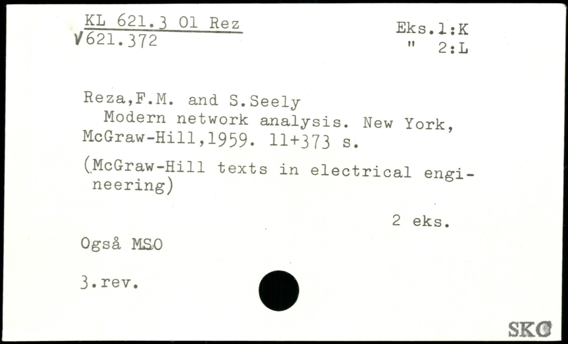 Modern network analysis. New York McGraw-Hill, 1959. H
