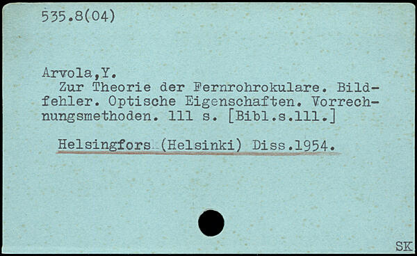 Zur Theorie der Bernrohrokulare. Bildfehler. Optische Eigenschaften. Torrechnung smethoden.