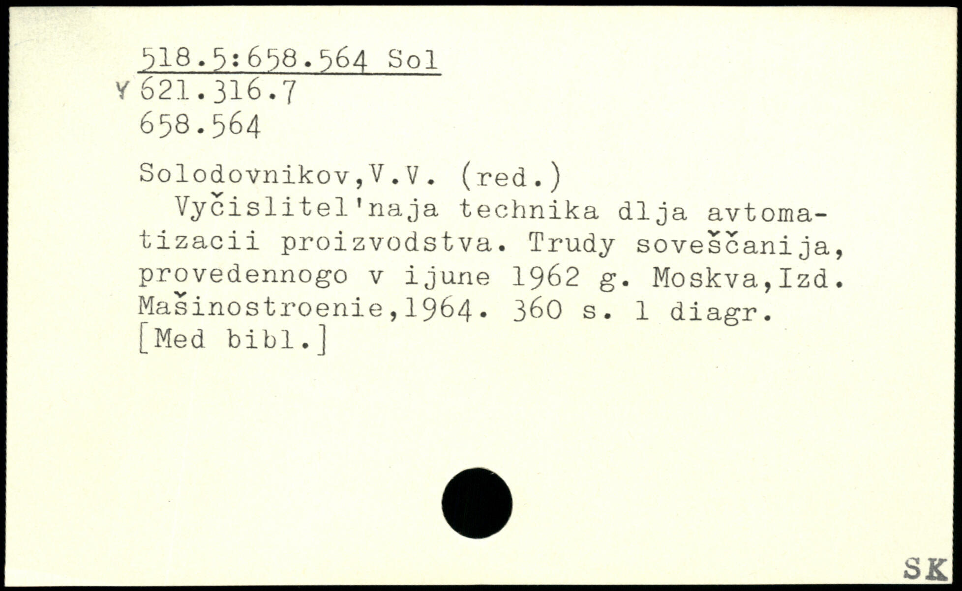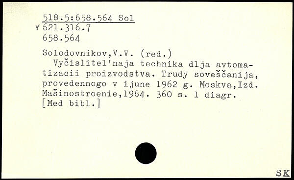 Vycislitel'naja technika dlja avtoma-tizacii proizvodstva. Trudy sovescanija, provedennogo v ijune 1962 g. Moskva,Izd. Masinostroenie,1964.