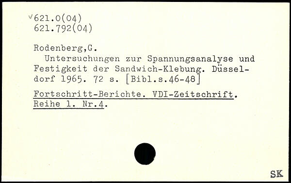 Untersuchungen zur Spannungsanalyse und Festigkeit der Sandwich-Klebung. Düsseldorf 1965.
