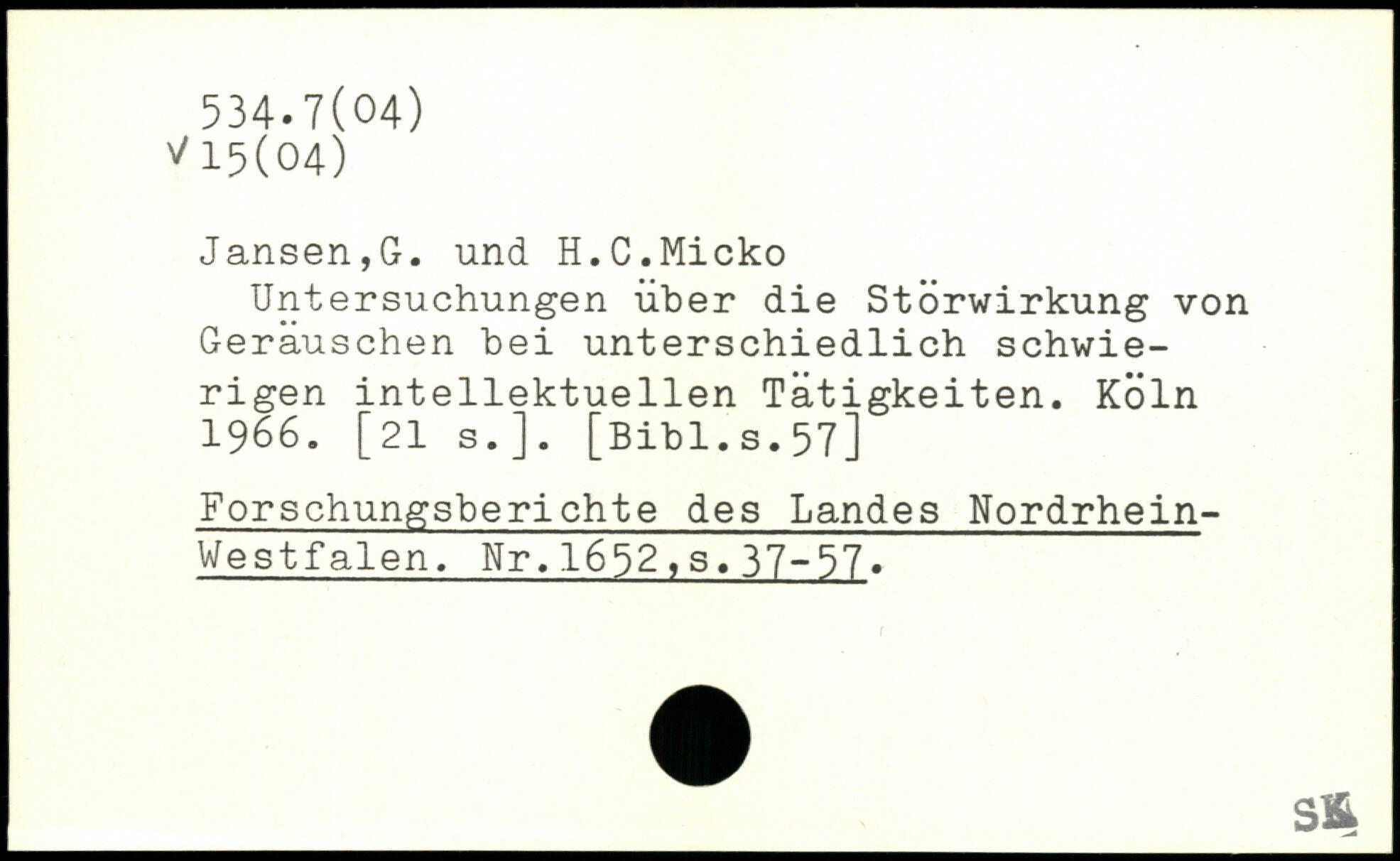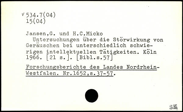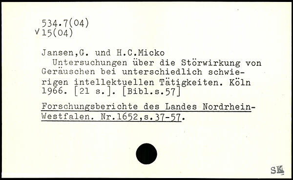 Untersuchungen über die Störwirkung von Geräuschen bei unterschiedlich schwierigen intellektuellen Tätigkeiten.