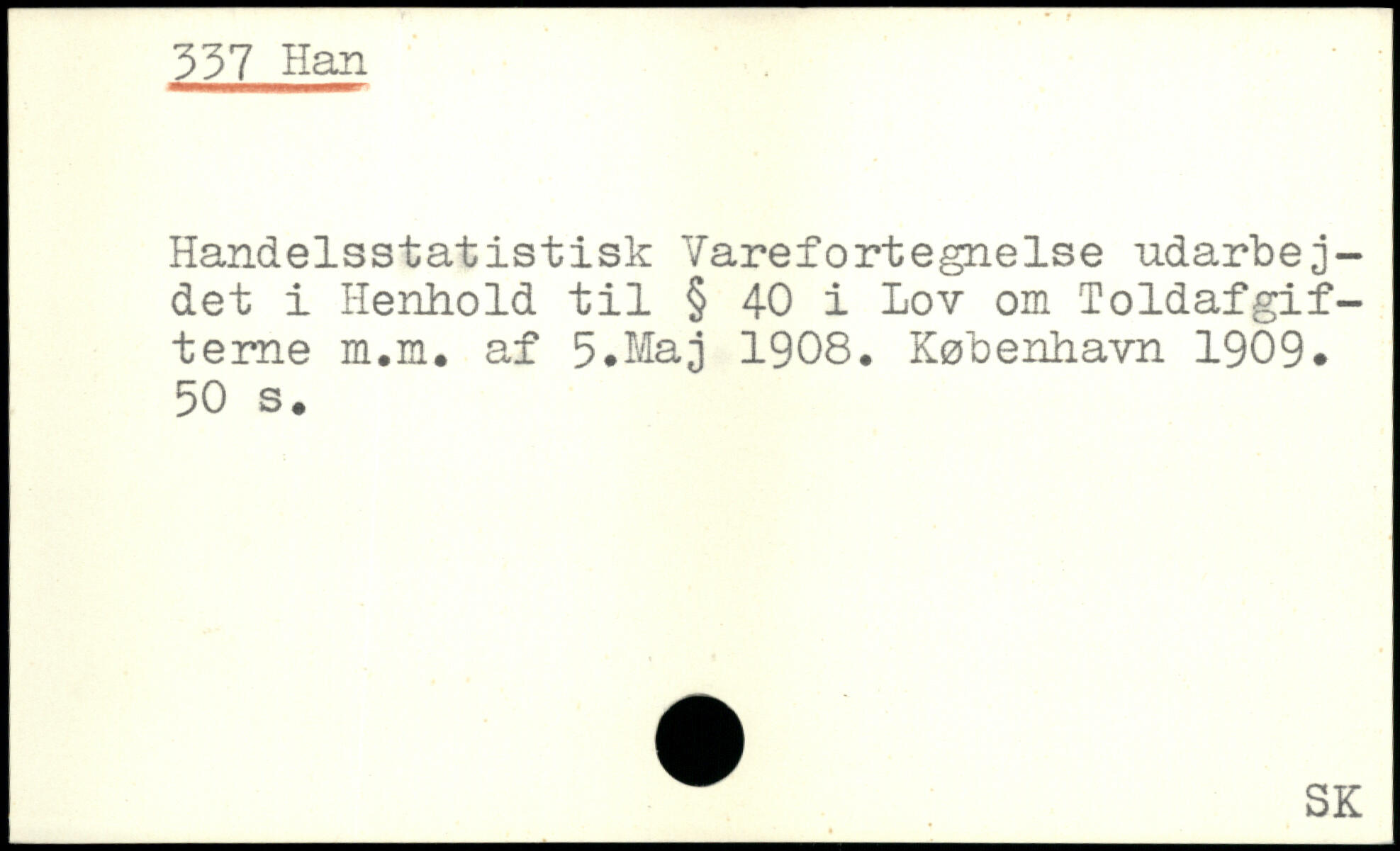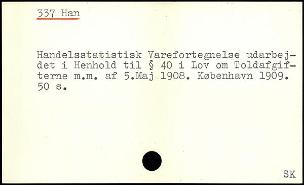 Handelsstatistisk VarefortegneIse udarbejdet i Henhold til § 40 i Lov om Toldafgifterne m.m. af 5.Maj 1908.