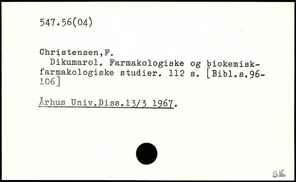 Chr:j.sten.sen,F. Dikumarol, Farmakologiske og biokemiskfarmakologiske studier.