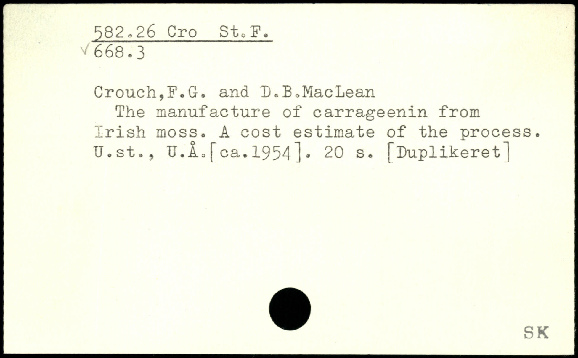Crouch,F.G. and I),B,MacLean The manufacture of carrageenin from Irish moss. A cost estimate of the process. U.st., U.Âo[ca.1954].