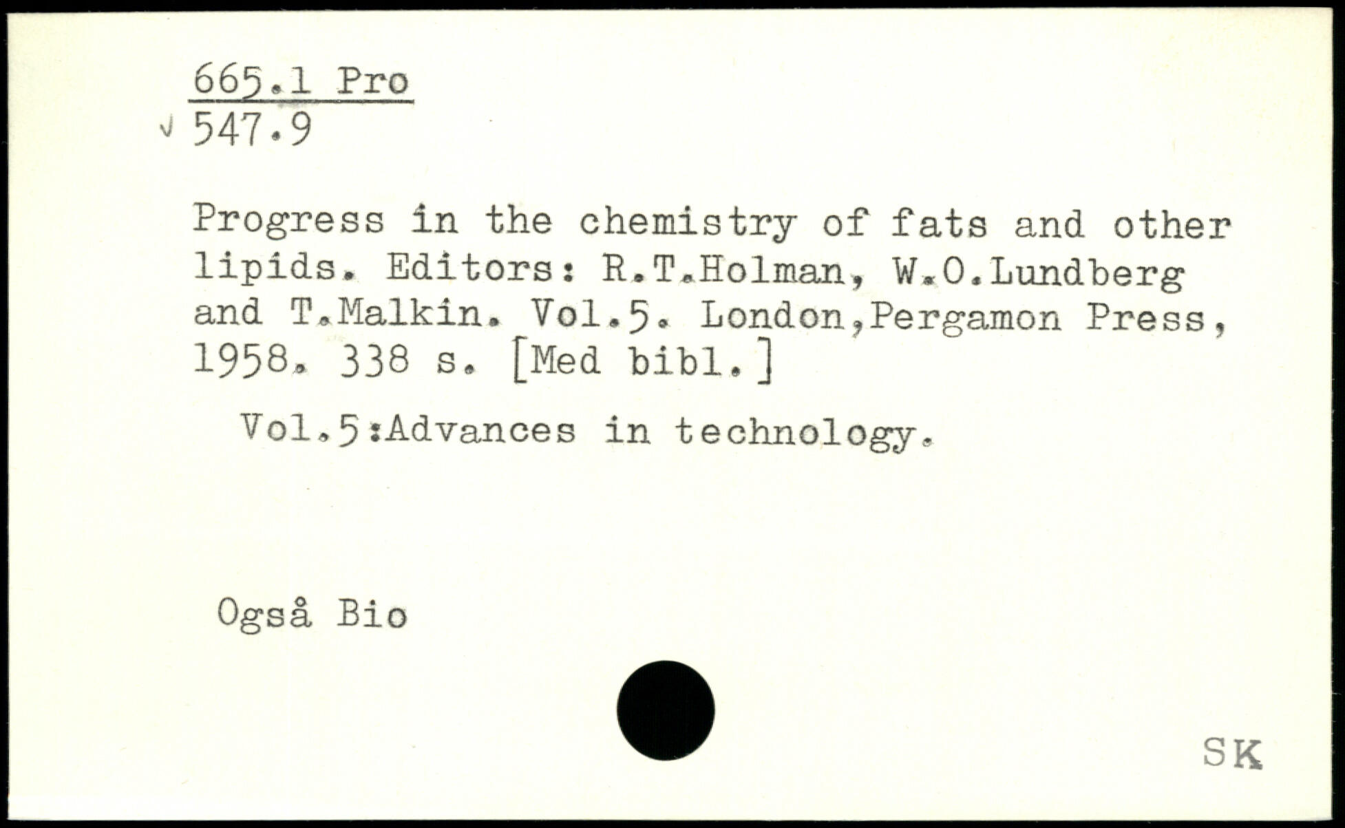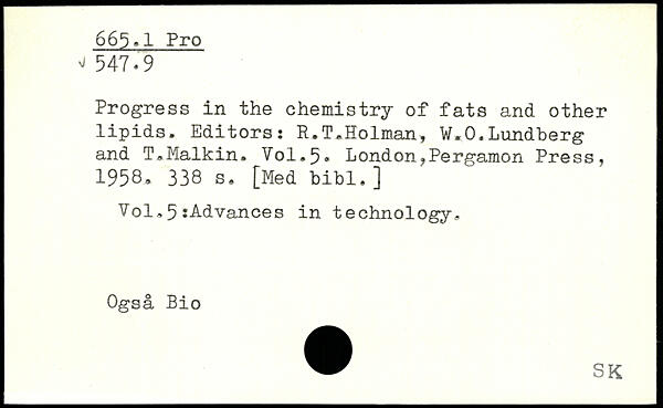 Progress in the chemistry of fats and other \ lipids. Editors: R.T.Holman, W.O.Lundberg and T.Malkin. V0I.5.