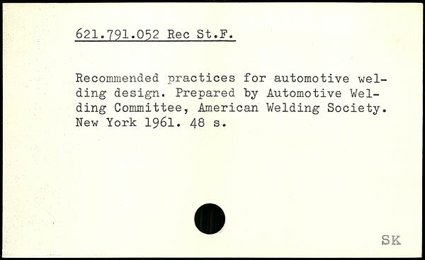 Recommended practices for automotive welding design. Prepared by Automotive Welding Committee, American Welding Society.