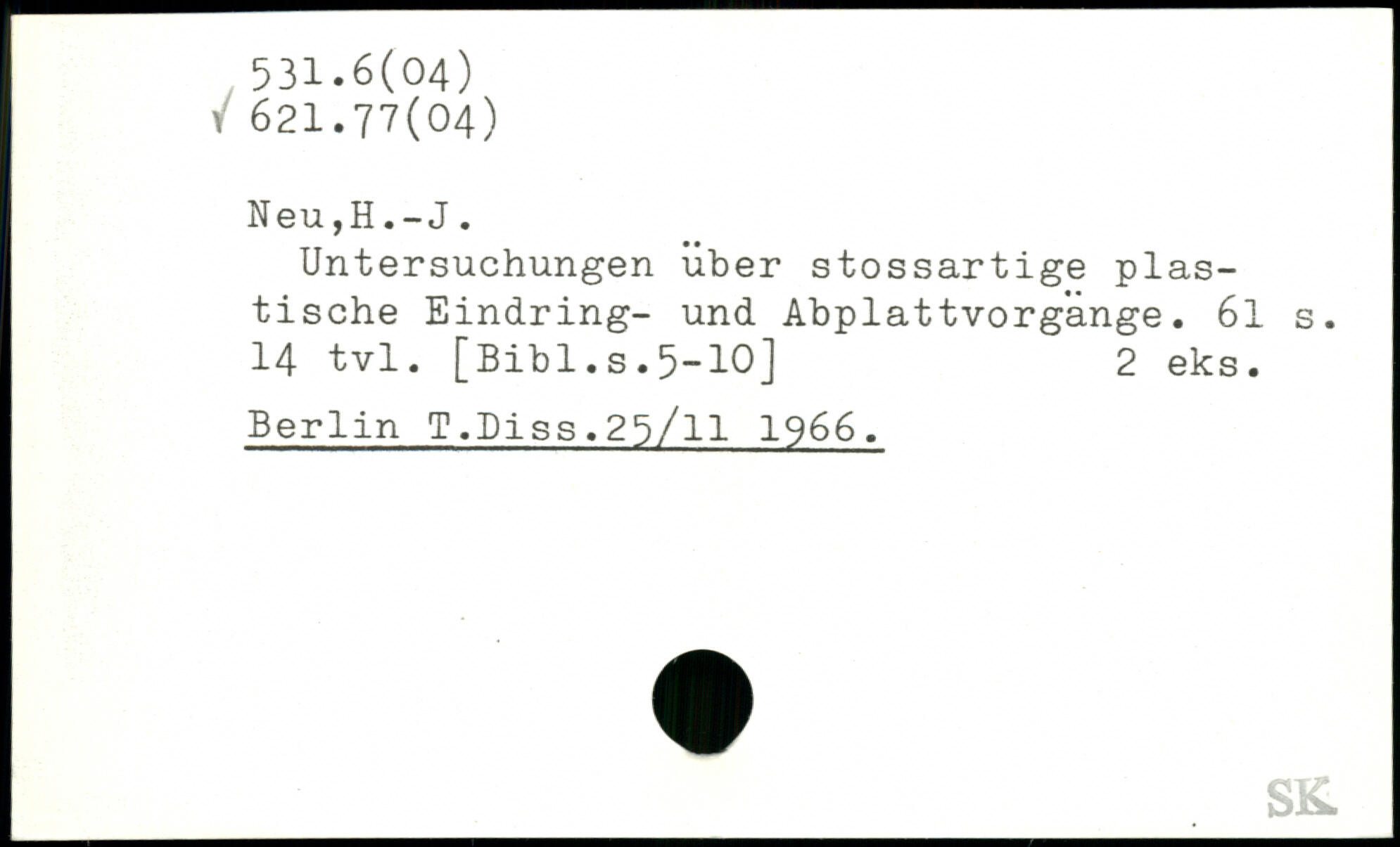 Untersuchungen über stossartige plastische Eindring- und Abplattvorgange. 6l s. 14 tvl.