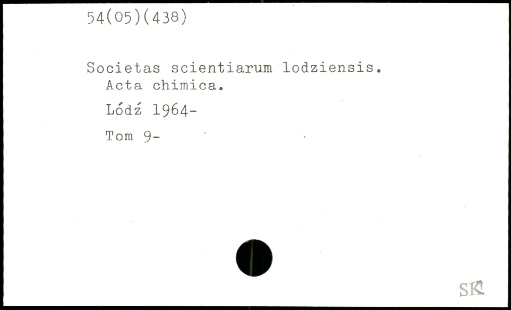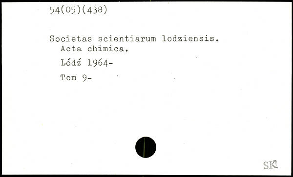 Societas scientiarum lodziensis. Acta chimica. Lodz 1964- Tom 9- O