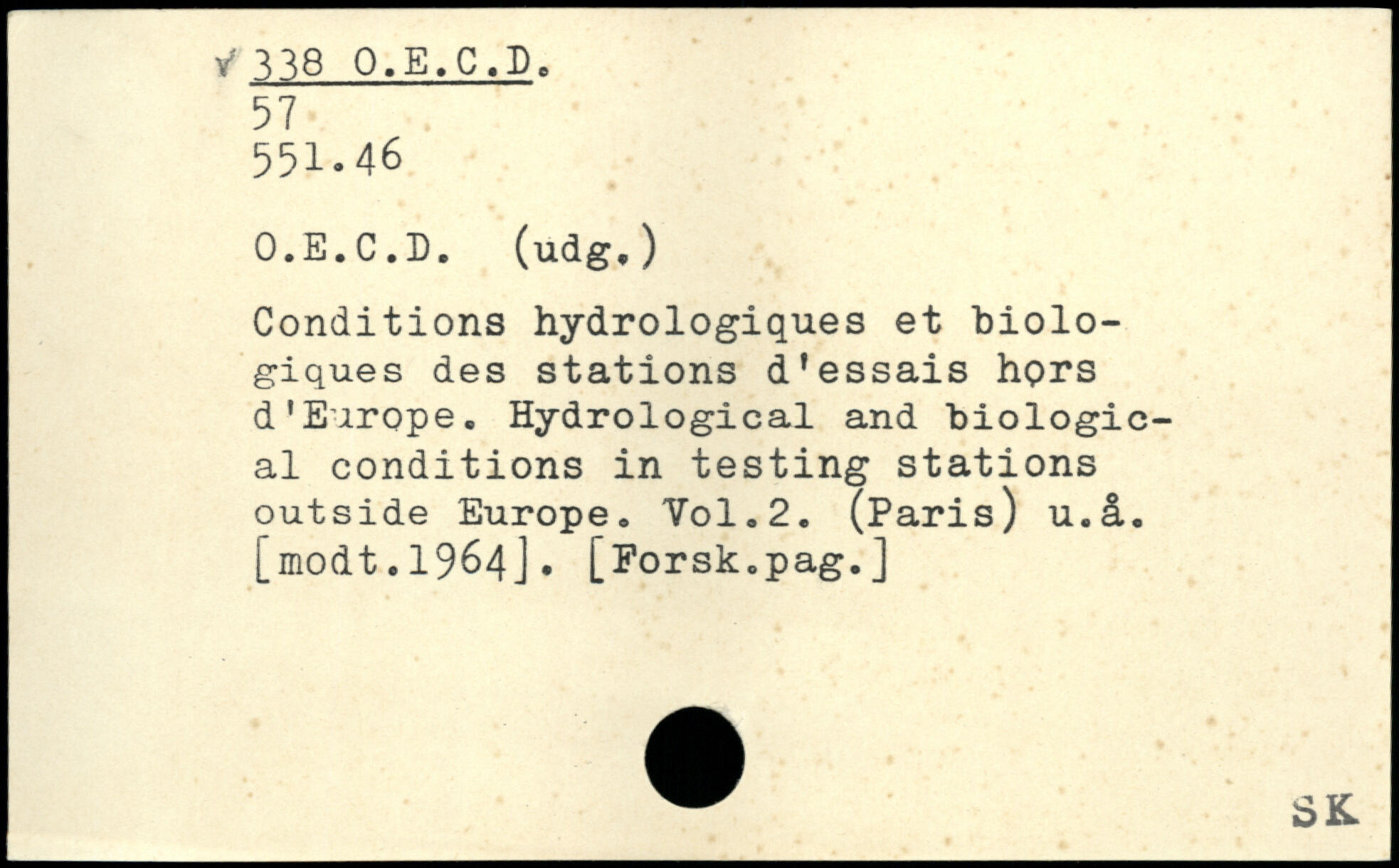 Conditions hydrologiques et biologiques des stations d'essais hors d'Europe. Hydrological and biological conditions in testing stations outside Europe.