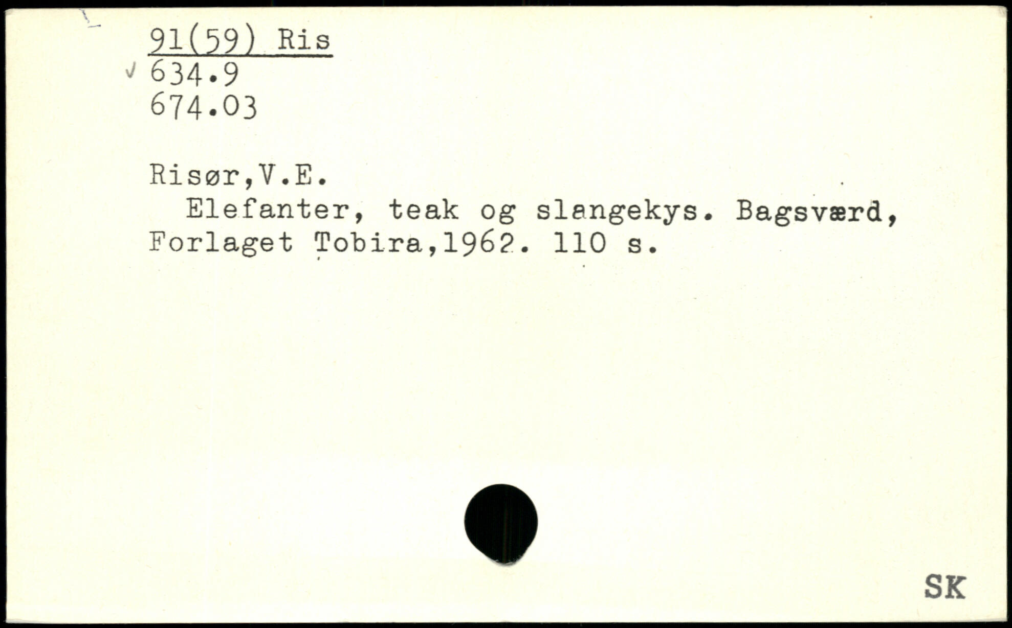 Elefanter, teak og sløngekys. Bagsværd, Forlaget Tobira,196?.