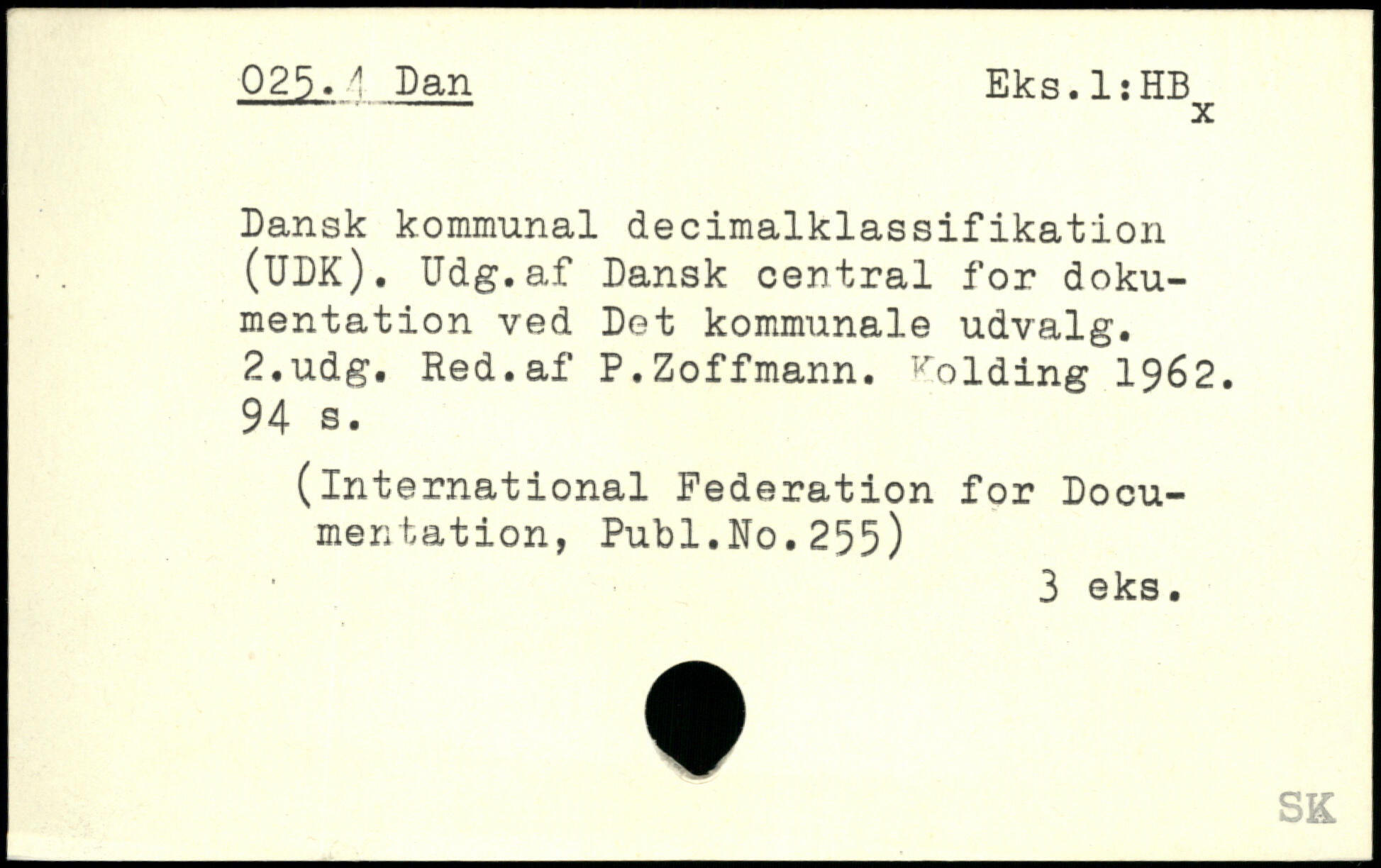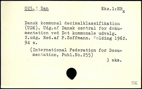 Dansk kommunal decimalklassifikation (UDK). Udg.af Dansk central for dokumentation ved Det kommunale udvalg.