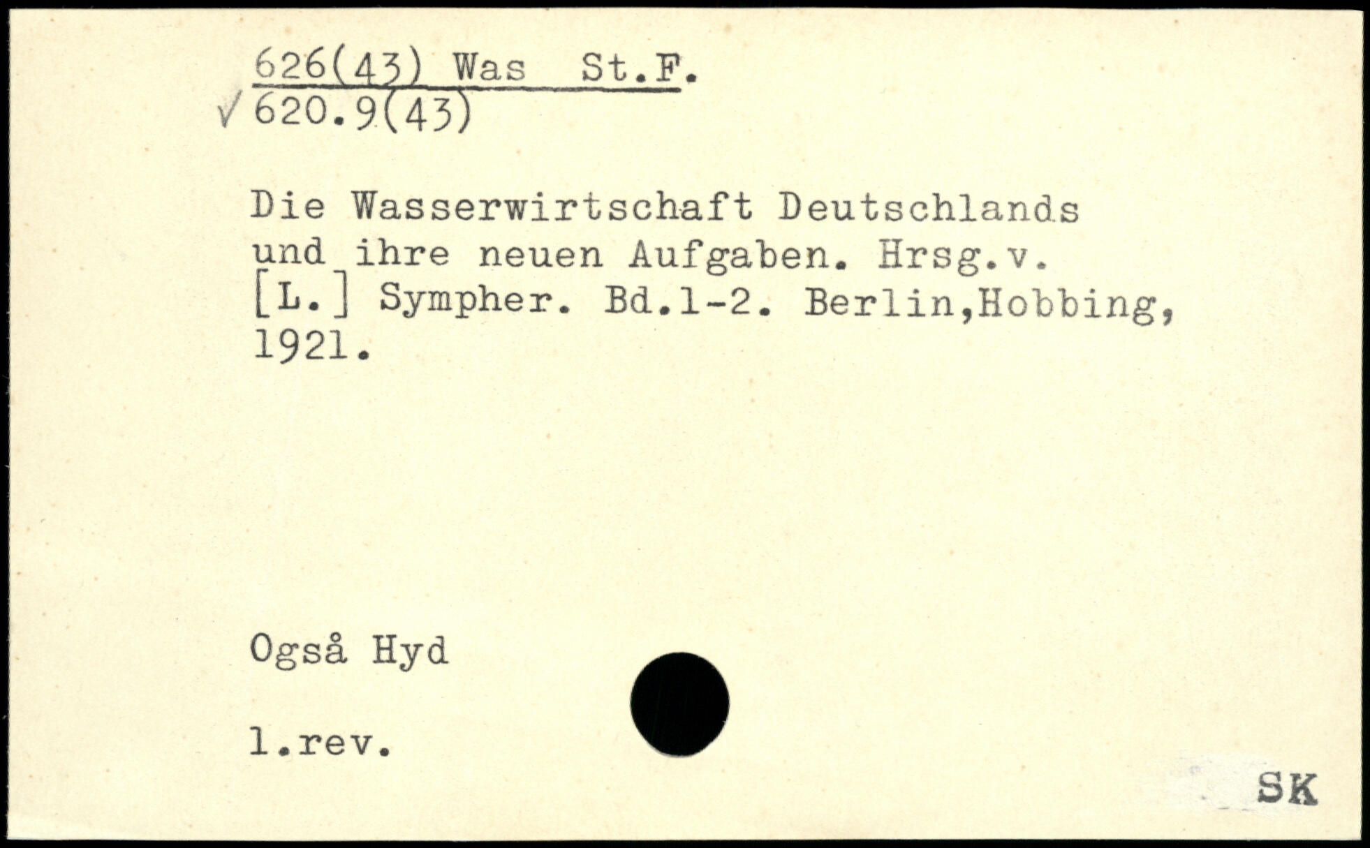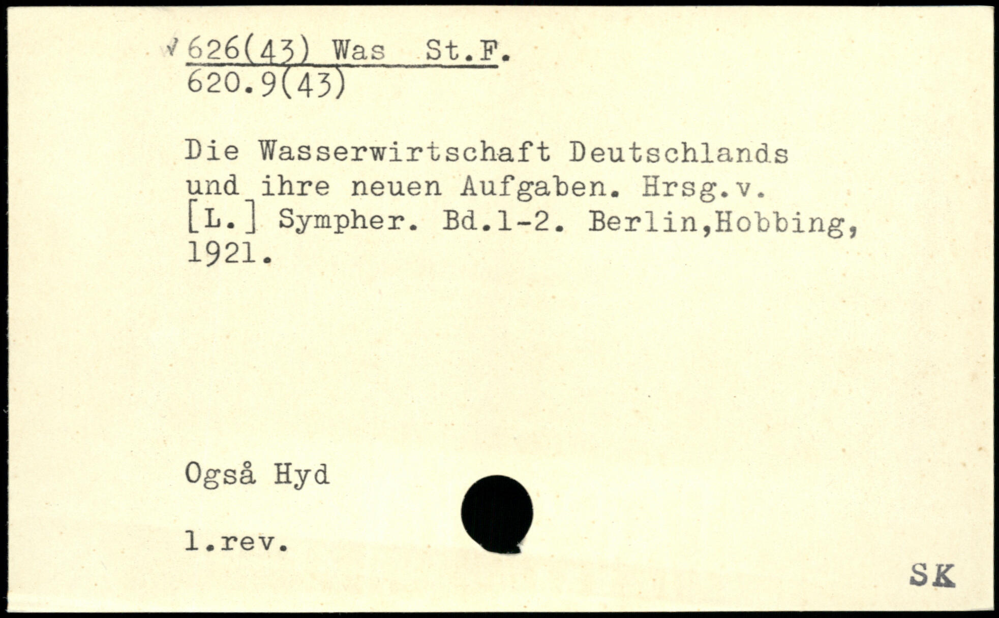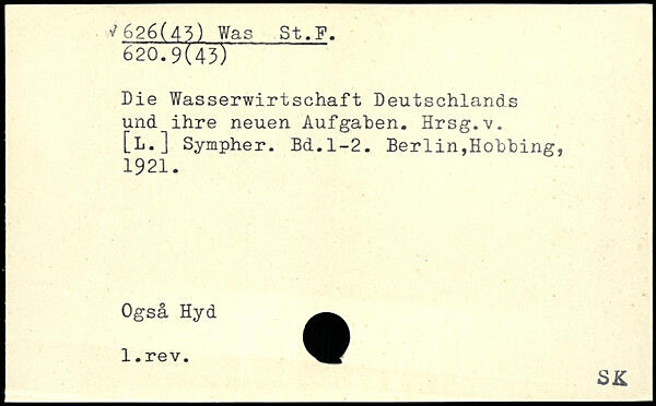 Die Wasserwirtschaft Deutschlands und ihre neuen Aufgaben. Hrsg.v. [l.] Sympher.