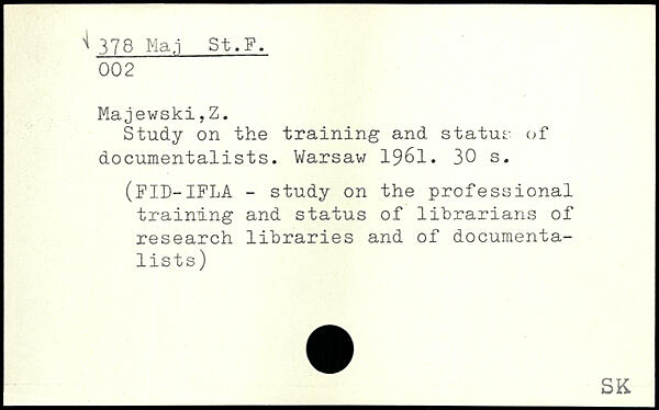 Study on the training and status of documentalists.