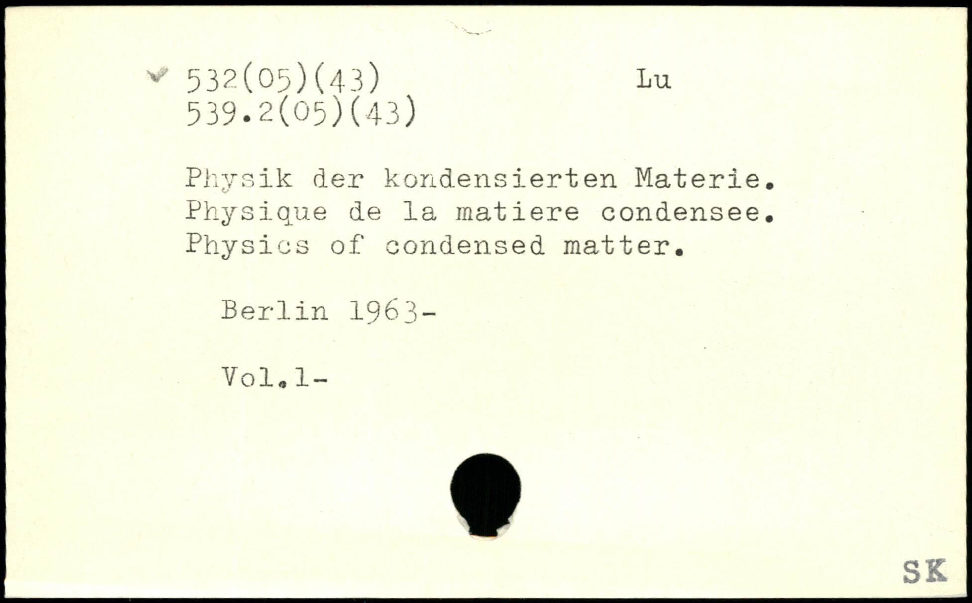 Physik der kondensierten Materie. Physique de la matière condensée. Physios of Condensed matter.