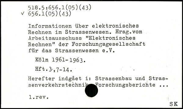 Informationen über elektronisches Rechnen im Strassenwesen. Hrsg.vom Arbeitsausschuss "Elektronisches Rechnen" der Forschungsgesellschaft für das Strassenwesen e.V.