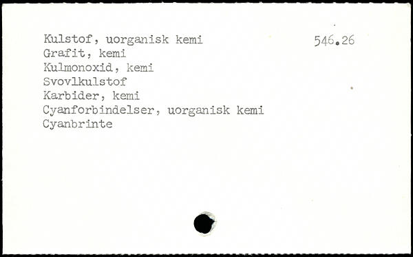Kulstof, uorganisk kemi 546.26 Grafit, kemi Kulmonoxid, kemi Svovlkulstof Kartider, kemi Cyanforbindelser, uorganisk kemi Cyanbrinte