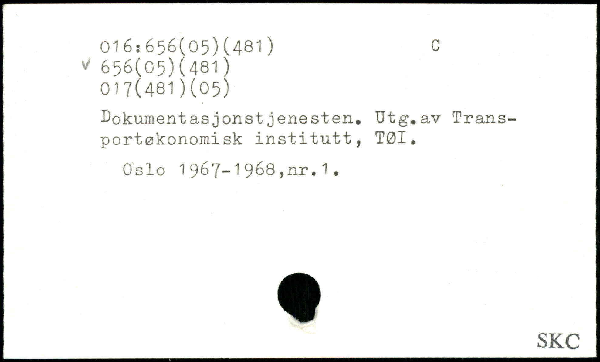 Dokumentasjonstjenesten. Utg.av Transportøkonomisk institutt, TØI. Oslo 1967-1968,nr.1.