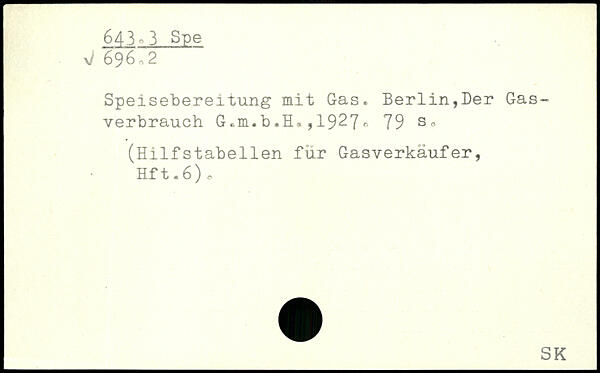 Speisebereitung mit Gas. Berlin,Der Gasverbrauch G.m.b.H.,1927.