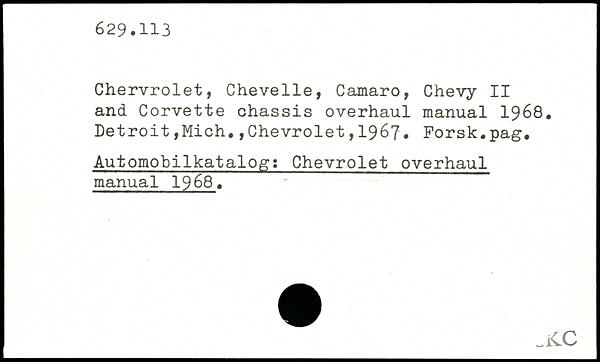 Chervrolet, Chevelle, Camaro, Chevy II and Corvette chassis overhaul manual 1968.