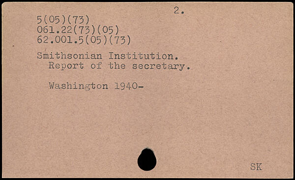 Smithsonian Institution. Report of the secretary.
