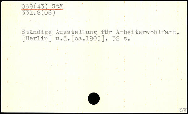 Ständige Ausstellung für Arbeiternohlfart. [Berlin] u.å.[ca.1905].