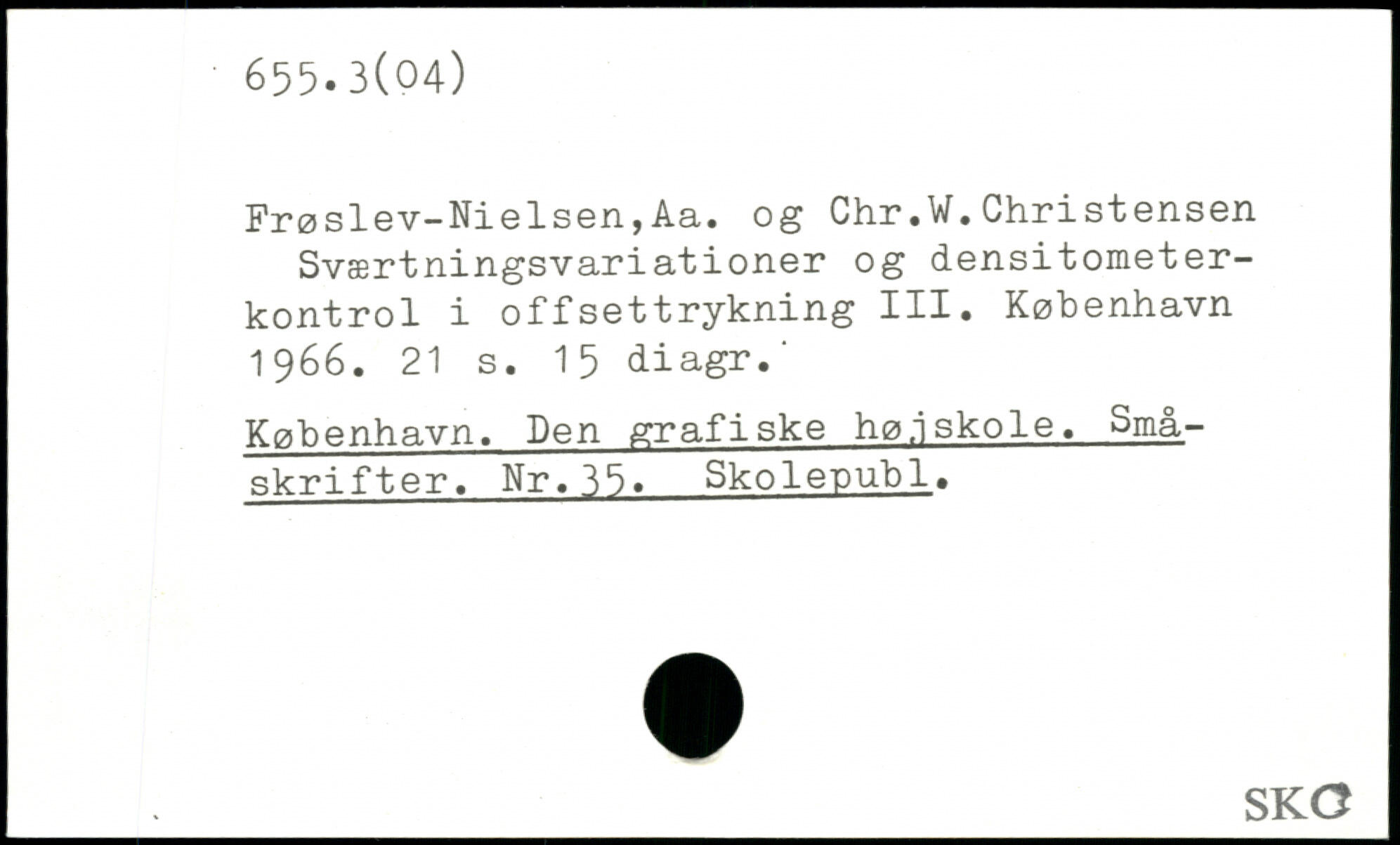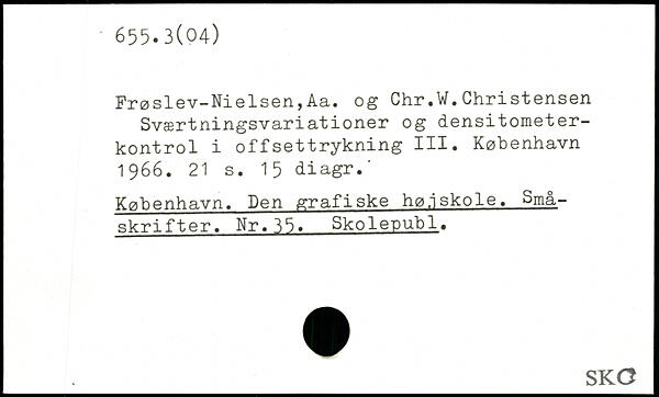 Frøslev-Nielsen,Aa. og Chr.W.Christensen Sværtningsvariationer og densitometer-kontrol i offsettrykning III.