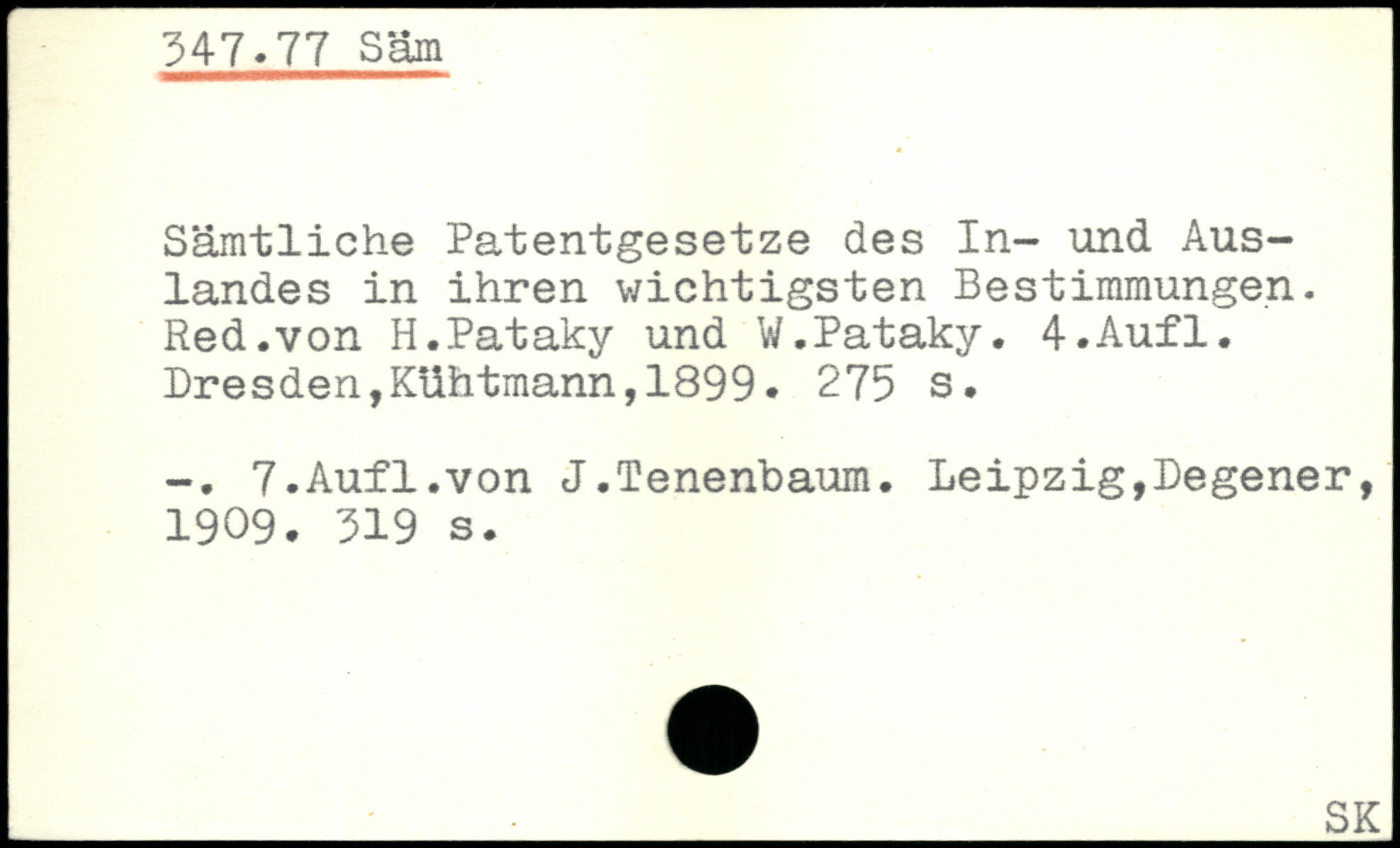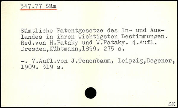 Sämtliche Patentgesetze des In- und Auslandes in ihren wichtigsten Bestimmungen. Red.von H.Pataky und W.Pataky.