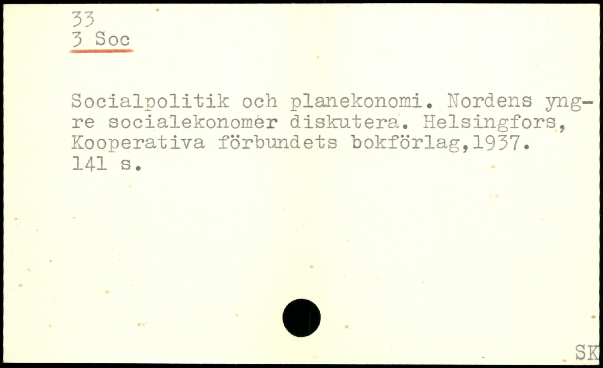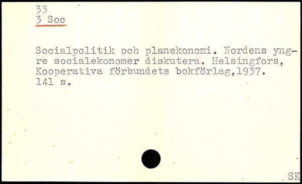 Socialpolitik och planekonomi, Nordens yngre socialekonomer diskutera, Helsingfors, Kooperativa forbundets bokförlag,1937. 141 s.