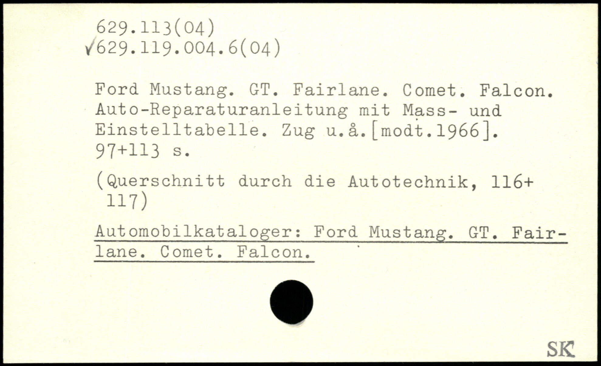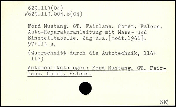 Ford Mustang. GT. Fairlane. Comet. Falcon. Auto-Reparaturanleitung mit Mass- und Einstelltabelle. Zug u.a.[modt.1966].