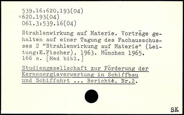 Strahlenwirkung auf Materie. Vorträge gehalten auf einer Tagung des Fachausschusses 2 "Strahlenwirkung auf Materie" (Lei-tung:E.Fischer), 1963.