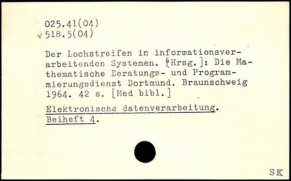 Der Lochstreifen in informationsver-arheitenden Systemen. fHrsg.]: Die Mathematische Beratungs- und Programmierungsdienst Dortmund. Braunschweig 1964.