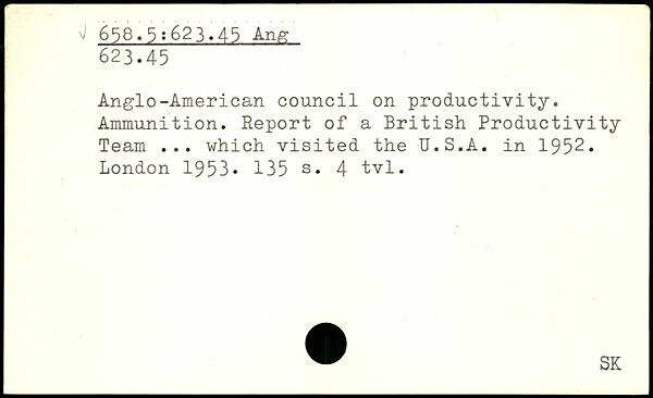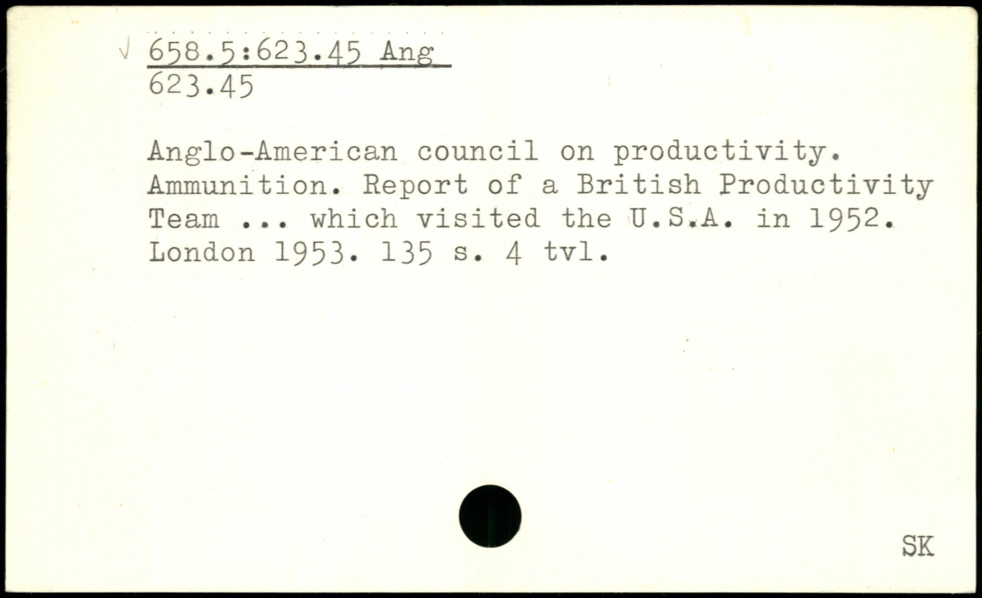 Anglo-American council on productivity. Ammunition. Report of a British Productivity-Team ... which visited the TJ.S.A. in 1952.