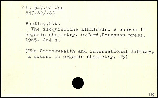 The isoquinoline alkaloids. A course in organic chemistry.