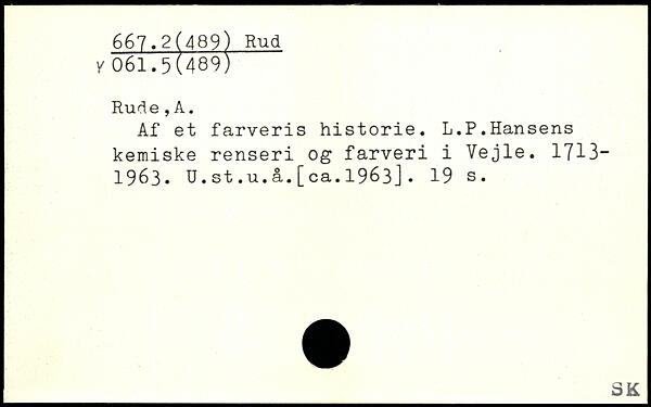 Af et farveris historie. L.P.Hansens kemiske renseri og farveri i Vejle. 1713— 1963. U.st.u.å.[ca.1963].