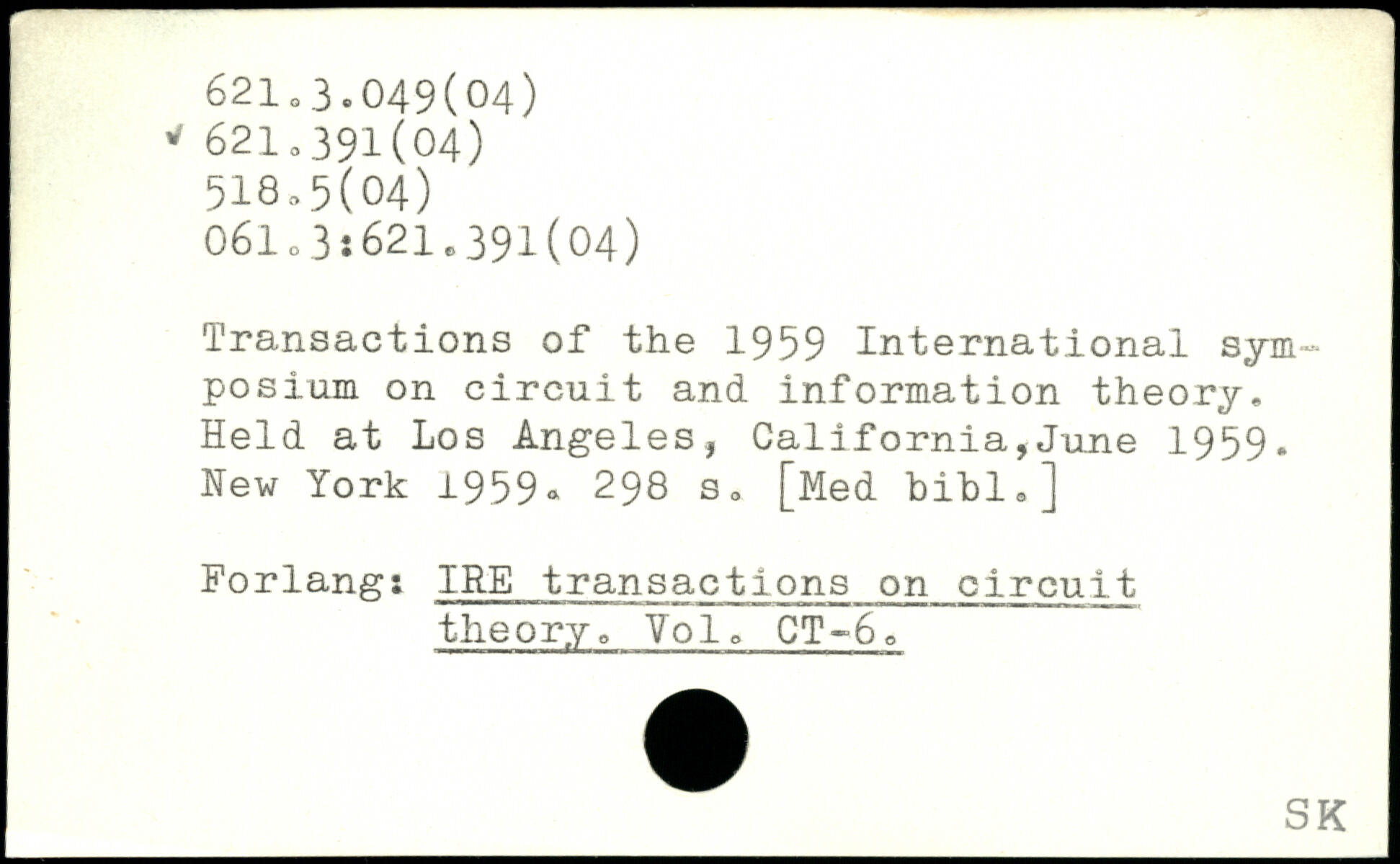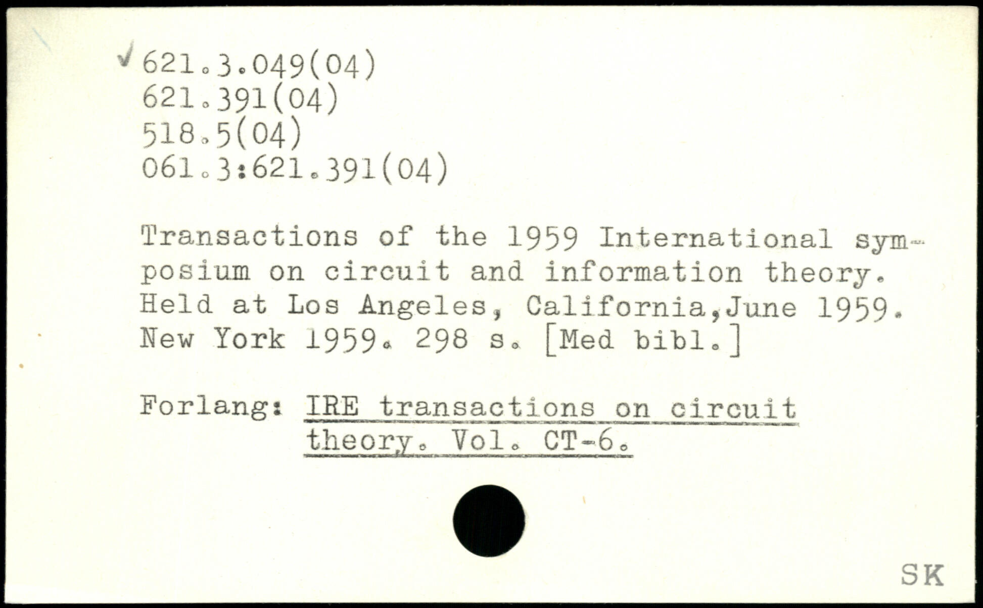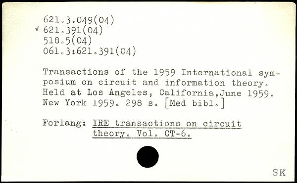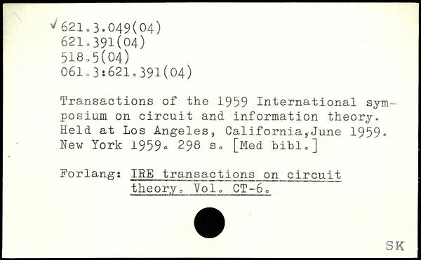 Transactions of the 1959 International symposium on circuit and information theory. Held at Los Angeles, California,June 1959. Hew York 1959