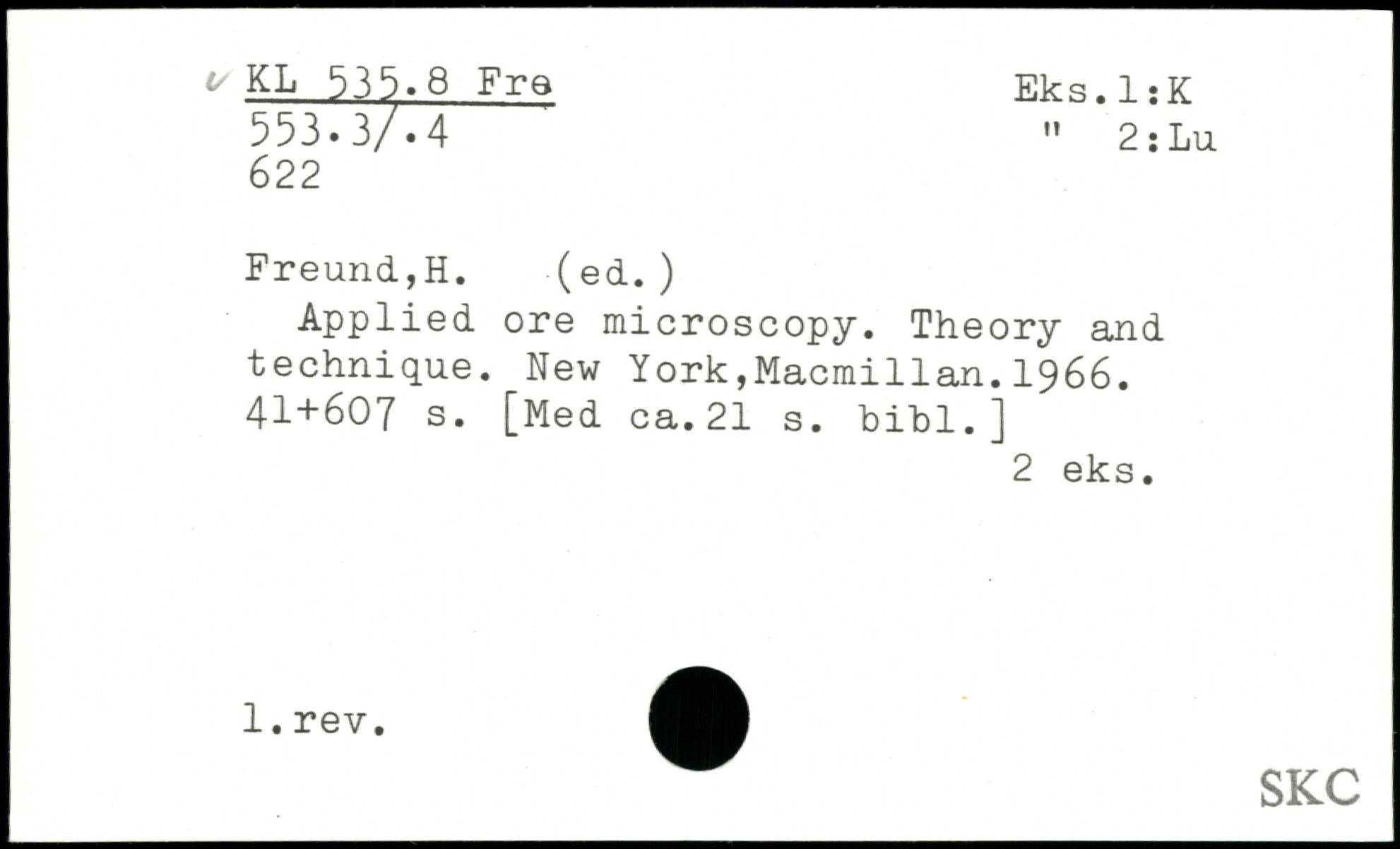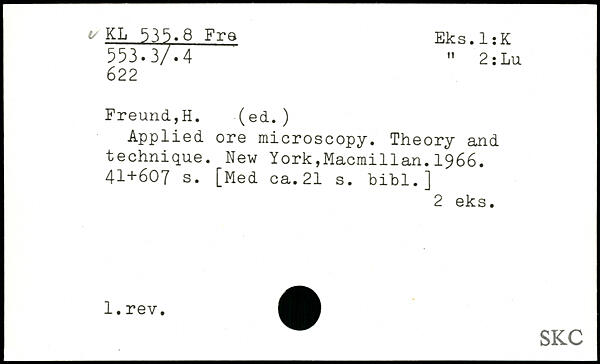 Applied ore microscopy. Theory and technique. New York,Macmillan.1966.