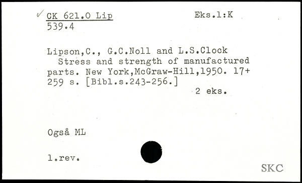 Lipson,C., G.C.Noll and L.S.Clock Stress and strength of manufactured parts.