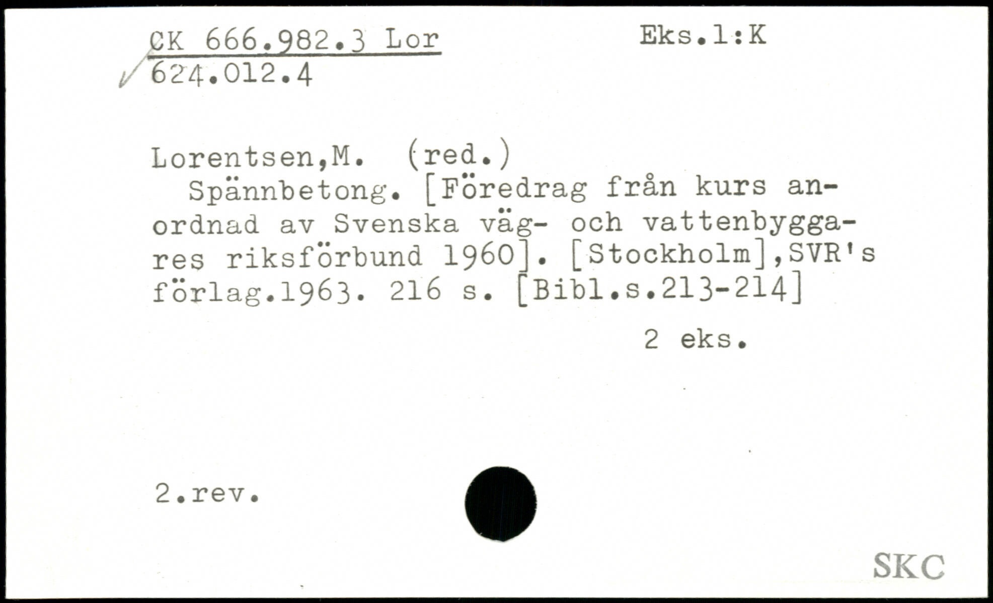 Spånnbetong. [Föredrag från kurs anordnad av Svenska våg- och vattenbyggares riksförbund 1960]. [Stockholm],SVR1s förlag. 1963. 2l
