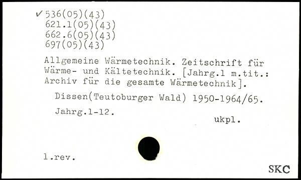Allgemeine Wärmetechnik. Zeitschrift für Warme- und Kältetechnik