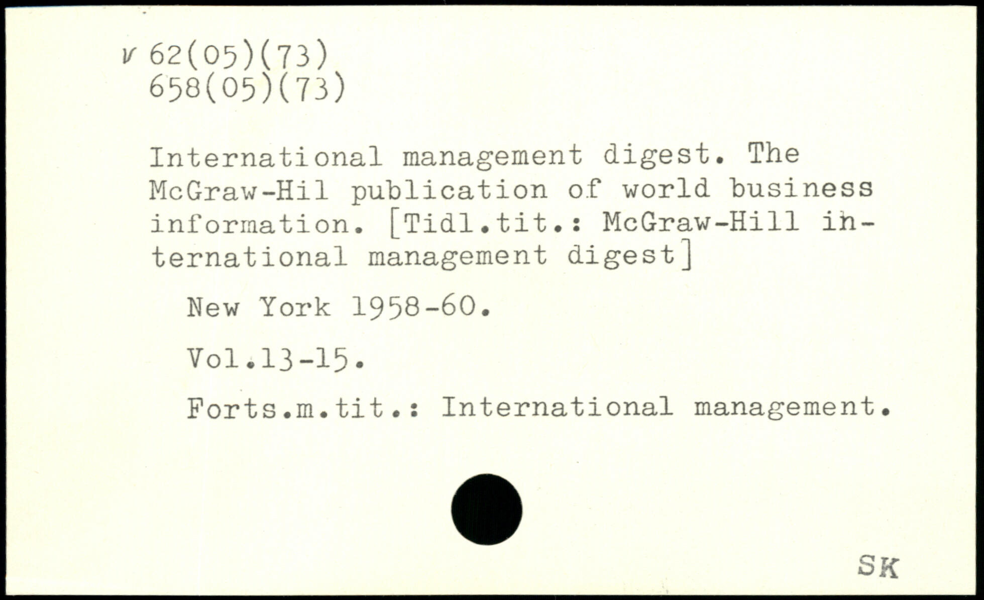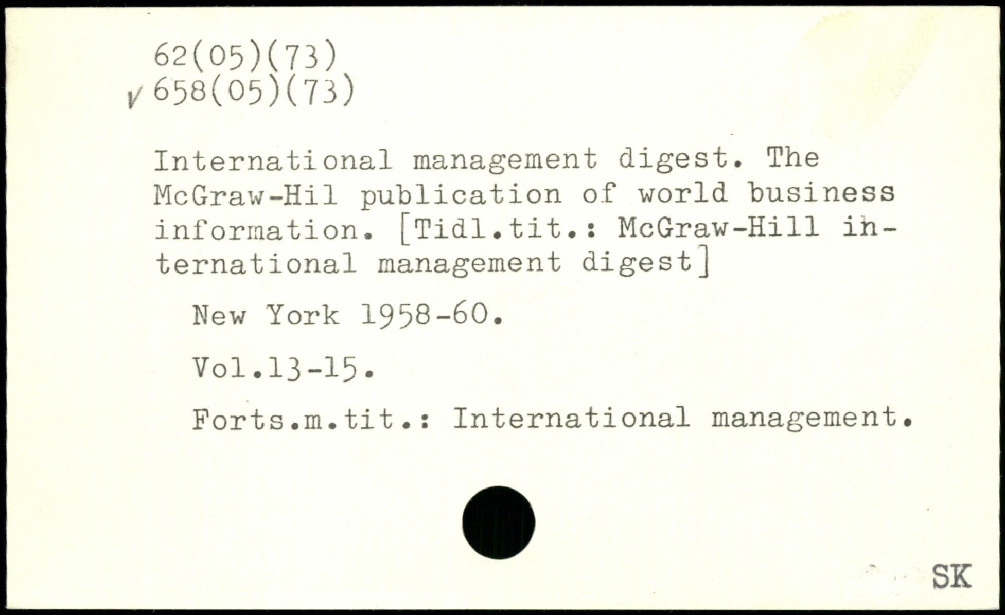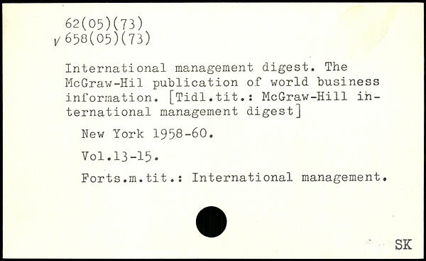 International management digest. The McGraw-Hil publication of world business information. [Tidl.tit.s McGraw-Hill international management digest]