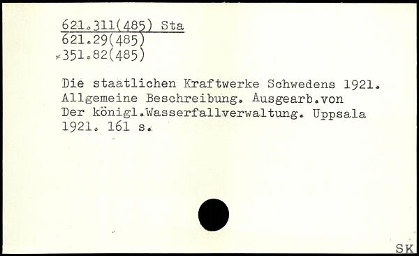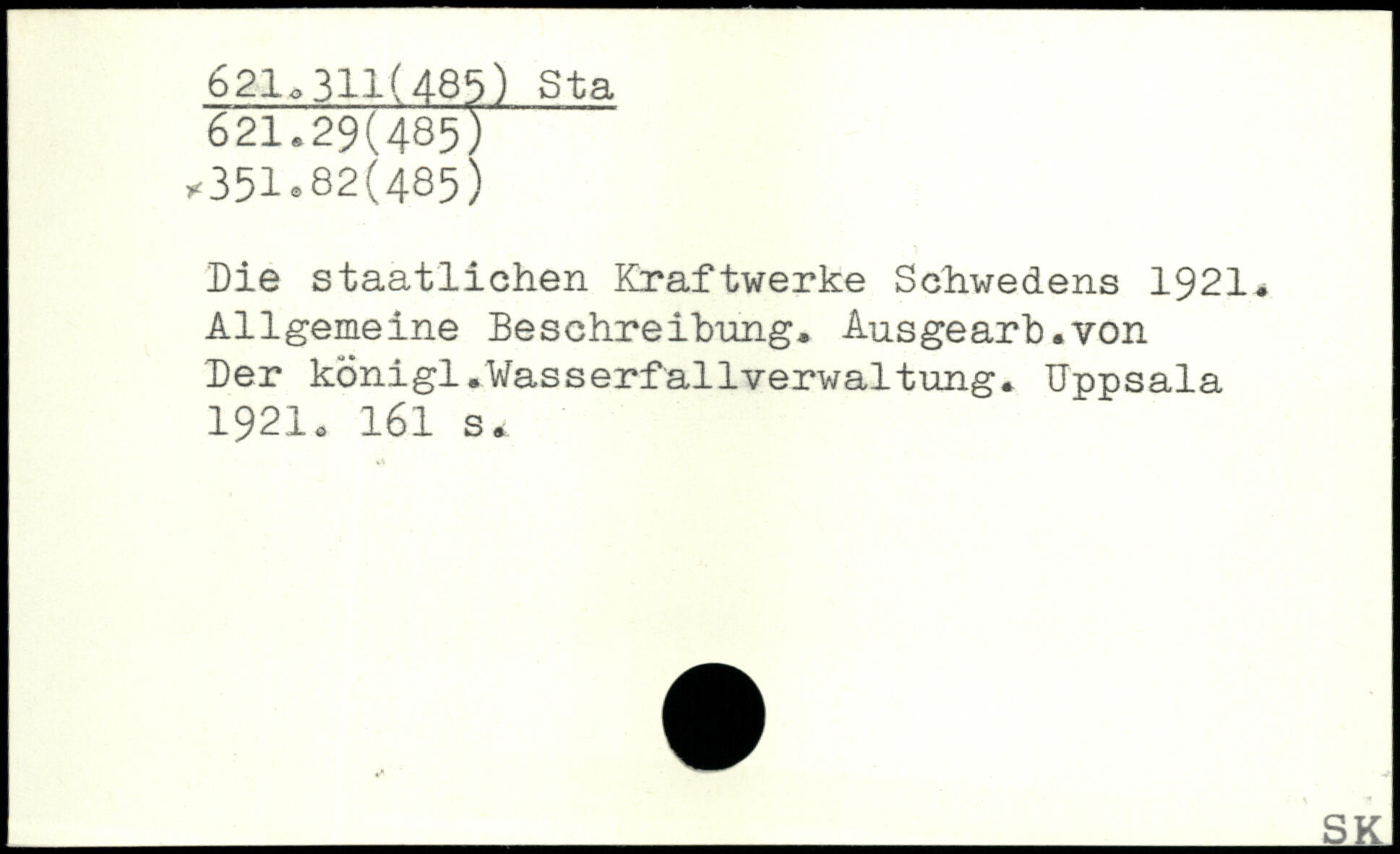 Die staatlichen Kraftwerke Schwedens 1921. Allgemeine DeSchreibung. Ausgearh.von Der konigl.Wasserfallverwaltung.