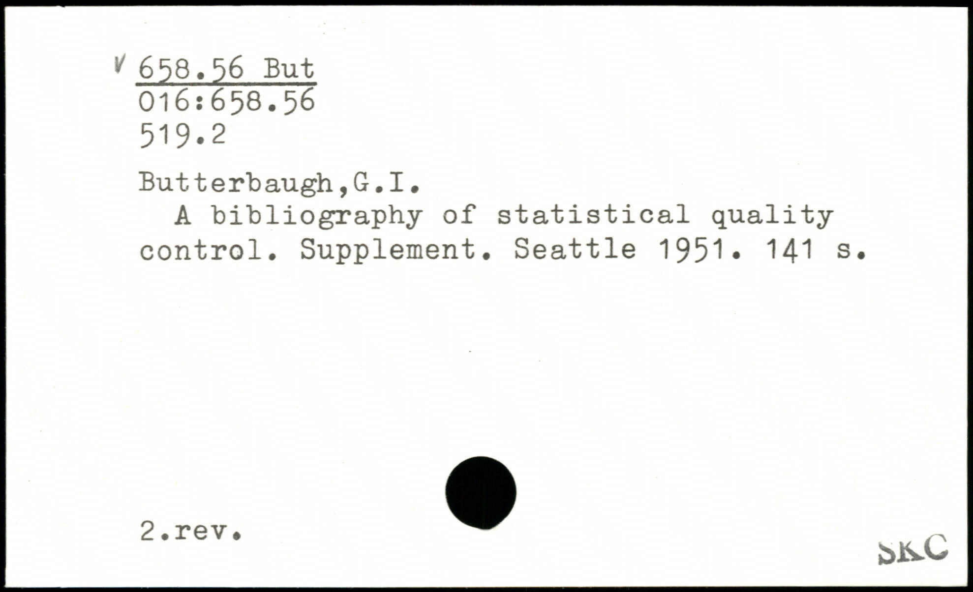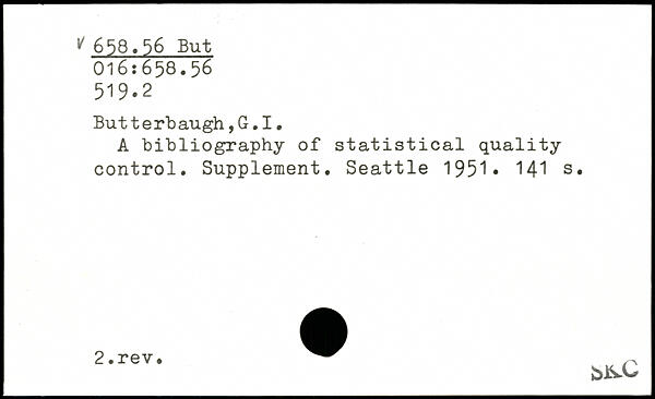 But t erb augh,G.I. A bibliography of statistical quality control. Supplement. Seattle 1951