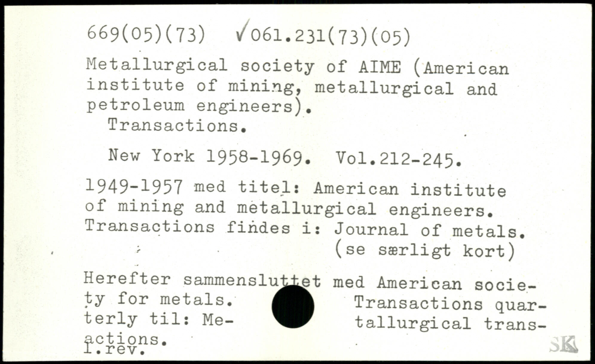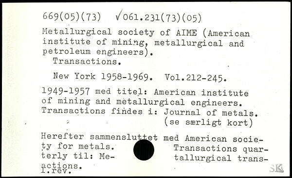 Metallurgical society of AIME (American institute of mining, metallurgical and petroleum engineers). Transactions.