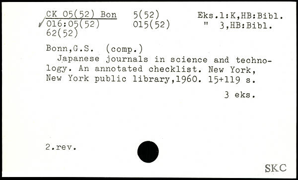 UDK: 05(52) Bon, 5(52), 016:05(52), 015(52), 62(52)