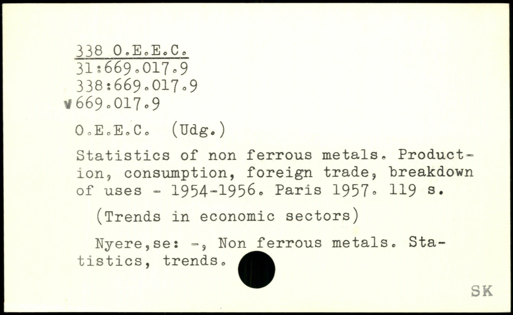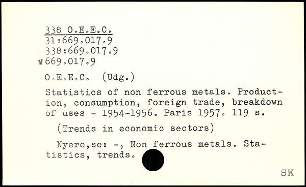 0-E.E.Co (TJdg.) Statistics of non ferrous metals. Production, consumption, foreign trade, breakdown of uses - 1954-1956,