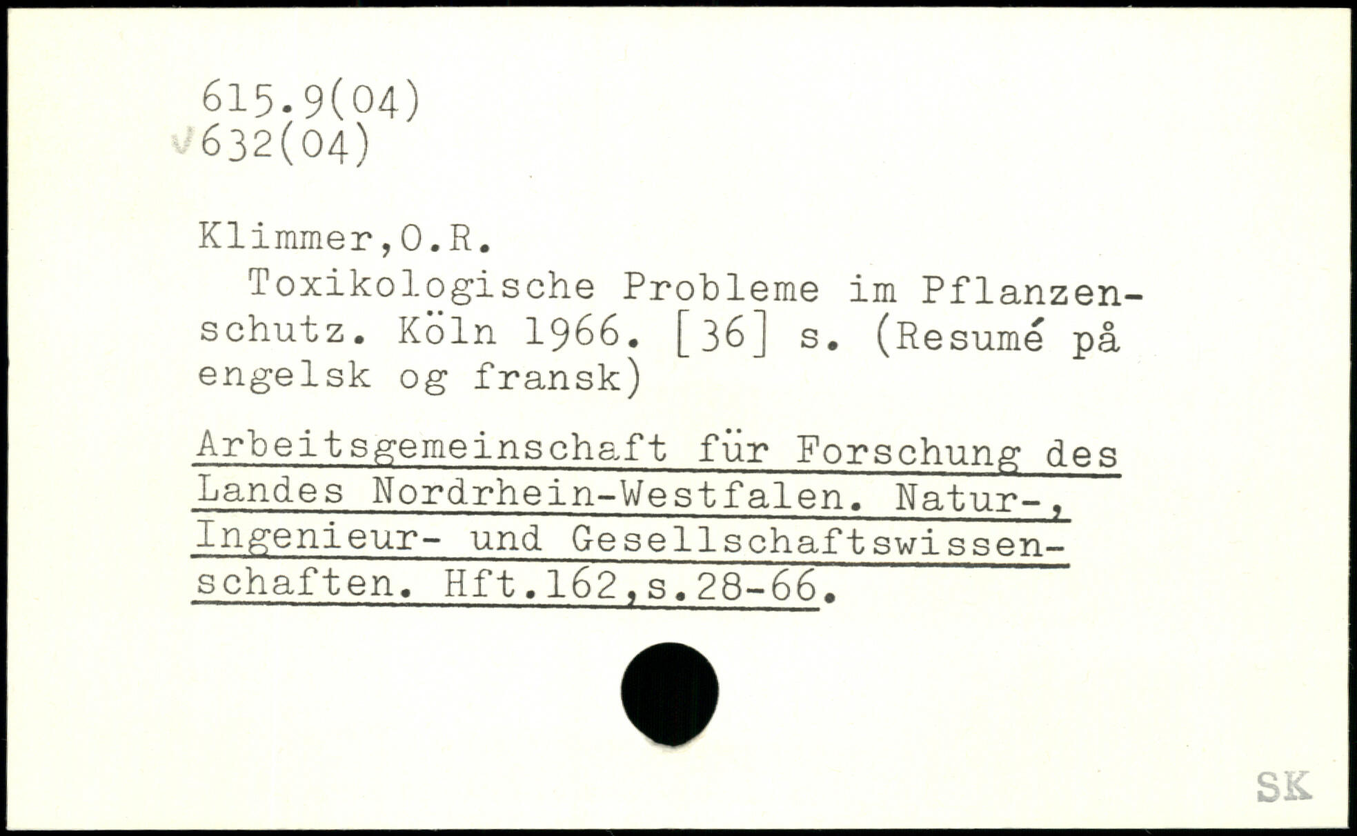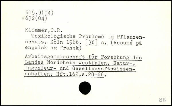 Toxikologische Probleme im Pflanzenschutz.